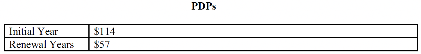 For Medicare Part D, initial commissions have risen from $109 to $114 per member per year, a 4.6% increase, and renewal commissions have gone from $55 to $57 per member per year, a 3.6% increase.